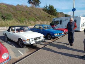 November started with probably our last Triumph run of the year. A beautiful Devon autumnal day, with the colours shining out from a mainly clear blue sky. We met for breakfast at the Haldon Forest Diner on the A38 Southbound, with 24 of us there.[pic 2] It was my pleasure to present Lorraine Adams and Julian Clutterbuck with the Lingard Memorial Trophy for going over and beyond this year.[pic 3] I will not embarrass them by saying more, but there are people very grateful to them both. Wayne and his immaculate 2500 S was on his first run with us and we were joined by Greg & John in the MGB GT and Mark’s friend Richard in a rarity I have not seen before, an Opal Monza. Then off for our run, not as I thought either Otter Nurseries or Dawlish, but a lovely run through the Teign Valley to Exeter and then on to Exmouth where we parked up on the Esplanade for more pics. Thankfully Lorraine and Julian knew the way as there would undoubtedly have been a divorce in the Franklin household. [pic 4 and 5] Whilst there an immaculate Harley Davidson pulled up after seeing the Triumphs and it turned out he was a Somerset member some 30 years ago. Thank you to everyone who came along to our Club Night and AGM at the Star in November. Jonathan Chartres presented a good set of accounts and we reported on another great year for the Club in Devon. We will continue to meet at The Star at Liverton in 2026 as James and Heidi make us very welcome. We chatted about event planning for 2026 and have started to compile a list of dates and events. With the promised help of so many members, John and I were re-elected as Area Organisers for Devon and we will continue to do our best to ensure that you can all get the very best out of your Club membership. Congratulations to Martin who brought the lone Triumph out on a dark and chilly night.[pic1] Stan Walters We were very sorry to hear of the sad passing of Stan Walters recently. Stan was a huge part of the Club in Devon and was responsible for growing it into a viable area in the early 80s. Many of our members will remember him as Stan of S W Classics, who had an enviable reputation for restoring our Triumphs in the South West. Our condolences to his wife Sue. Inter Club Skittles We met up with the SOC and a few members from the Dolomite Club for our annual Inter Triumph Club Skittles. Organised as usual by Claire Purser at the Waie Inn, nearly 40 people took part. We were delighted to win the trophy again! [pic 2] SOC came second and the Dolomite Club in 3rd place. Low numbers from the Dolly Club didn’t matter as the scores were averaged. Top scorer was our Graham, [pic 3]dead heating with Leah from SOC, whilst Graham’s sister Rosalind was the proud winner of the wooden spoon. Young Ruby was competing against two older boys In the Juniors but put up a good performance.