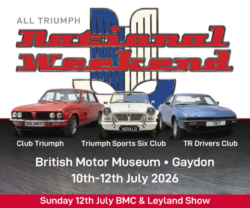 The TSSC are really pleased to announce our National Weekend will be held in conjunction with our friends at Club Triumph & TR Drivers Club on 10th - 12th July at the British Motor Museum at Gaydon CV35 0BJ. Camping available or local hotels, lots to do & Sunday will include the Gaydon British Leyland Day. Save the Date - More booking details will follow. All Welcome