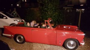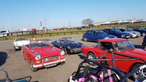 March's meeting saw high winds but it was dry and the sky was clear so we had a great turn-out of Triumphs in the Plough carpark: Mike's fuel injected Herald, Rob's poorman's e-type GT6, Toby's tupperware Triumph Hurricane, my shiny Vitesse powered Herald, Andy's swing-sprung Spitfire and Chris's resprayed TR7. Vinnie, Tim, other Chris, John and Malcolm joined us for a great night of natter. Toby and I were able to feed back on the amazing day we had had at Snetterton just over a week before. It was a track day for non-track-day people, which was right up our street. There were cars from all walks of life, from Williams Clio hot hatches through Porsches to a beautiful blue Ferrari, a spirited works Mini and a gorgeous Jaguar D-type quality replica. Everyone was very friendly and welcoming. Toby enjoyed squeezing every last drop of power out of his Zetec engined Hurricane and his car seemed to stick to the track rather better than mine. The only thing we had to provide was a helmet, full face in convertibles so this was a day any one of us could have enjoyed. Here is Toby in the pit lane waiting for our turn to go round again - it was a glorious day so he'd taken his helmet off while he waited. Sadly I only managed to coax two of us from the Club to make it. We got some admiring / sarcastic comments about the amount of squealing our tires made, and the body lean in my case. If you're going to go for one of these days I reckon you should have as much fun as is humanly possible without actually hurting yourself or anyone else. The only limitation was there was no timing, which made the day affordable as the insurance and their requirements would have been too high a bar for us mere mortals to join in otherwise.However, that didn't stop me awarding my car 'best in Heralds'. Lastly, just to say that our cars are magnificent things that should be enjoyed. Get them on the road (Chris and John:yes, this means you). They need to be out there being driven, and not just on trips like our upcoming North West Coast 850 miles round the single track roads of Scotland but down country lanes or even just to the shops. When they are out and about, you get that warm fuzzy feeling again and people start to reminisce on their Herald, Spitfire or TR. Let them enjoy your car - they are reminding you why you love it. Here are some of my local Cub pack 'enjoying' my car; I had to haul them out after they discovered the horn and wouldn't stop beeping it in the end. The club's AGM is on the 14th of April in Lubenham and National Drive It Day is coming up on the 28th of April so get out and drive it, that is what it is for. It is also time to look at the club's events over the summer and book yourself a place at the club's main summer event at Stratford Racecourse in mid August, or others such as SEM in mid May or Silverstone Classic in late July. I'm tempted by the overseas trips to Spa Classic in May or Laon Historique early June and the Derwent Valley Peak Run at the end of June looks to be my kind of silly although my own calendar's pretty full around then. Book something! The events calendar is chock full of things to do more with your Triumph! Next meetings at the Plough are Monday 1st April (all fools and Triumph nuts welcome) and Monday 13th of May (the 6th is a bank holiday and we skip those).