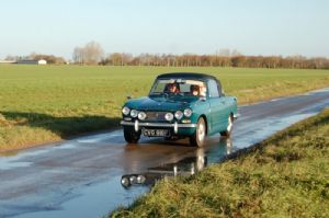 Using a tulip route originally planned for 2021 but cancelled thanks to Covid, we met for a chilly 9.00 start from Dereham Market place. The 50 mile run took in Swanton Morley and the old runway at Deopham Green (usually a good road for some foot down driving but today unfortunately curtailed due to a lady and her horse), then continued along the A11 to Spooner Row, before taking a circular route around Old Buckenham for some Triumph spotting. It finally crossed a ford just before arriving at Peter Beales Roses. Yet again the restaurant did us proud with lovely food and great service as the staff coped brilliantly with our group of 28. Three Triumph clubs were represented with 14 classics including three big Triumphs, a Vitesse, a Herald, three TR4s, a TR3 and an MGB. Most popular was the TR7/8 with four.
