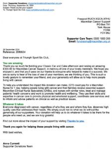 Starting with a run from Attleborough and finishing at Saham Toney for tea and cake. The car of the show must have been the 1937 Triumph Dolomite, which coped well with the run and was admired by all. Thanks to Christina, Emily and Christine for the baking. Thanks also to Lou and Karen for helping out in the kitchen, all the offers of help and of course to all those that came along to make it such a great day. We raised just under £300 for Macmillan Cancer Support.