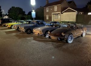 A great evening for a drive led to a good turn out of Triumphs in the Worlds End carpark for the TSSC Norfolk monthly meet. Nice to see a few new faces too.