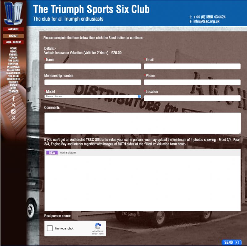 If you can't get an Authorised TSSC Official to value your car in person, members can easily request a valuation on-line the Valuations menu. Just fill out the online form and attach a minimum of four photos.